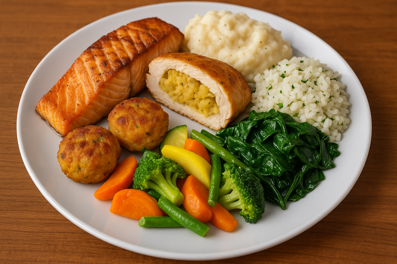 Plated-style menus or buffet pans.